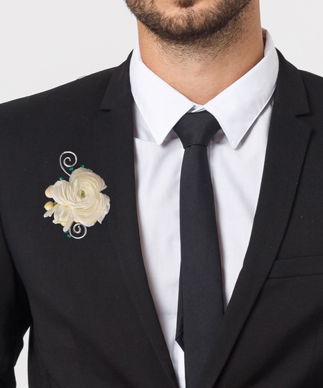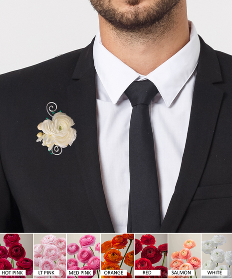 Turn heads with our Glam Boutonniere, featuring ranunculus and sparkling accents like wire designs and gemstones. This show-stopping accessory is perfect for those who want to make a dazzling statement at any event.