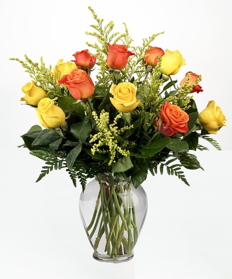 Send her a vase full of sunshine - glorious roses in brilliant shades of orange and yellow. Delivered in a crystal clear vase, this is a dazzling gift that will warm her heart for days - maybe weeks.