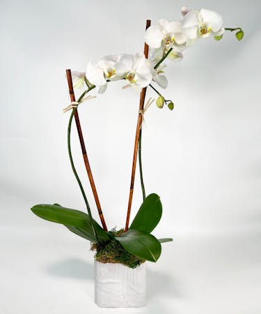 A classic, timeless, elegant Mother's Day gift. Surprise her with a California grown phalaenopsis orchid plant. Low maintenance and long lasting in a keepsake Accent Decor ceramic container