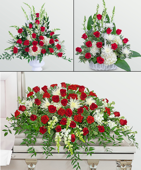 Sending a Serene Sanctuary Sympathy Spray from Norton’s Florist in Birmingham is a heartfelt way to express condolences and honor the memory of a loved one. This elegant sympathy collection, featuring a striking combination of red and white flowers, symbolizes love, reverence, and peace. The deep red blooms represent enduring love and respect, while the soft white flowers offer a sense of purity and serenity, creating a comforting and meaningful tribute.